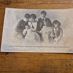 Ett vykort med ett fotografi av en kvinna och ett barn. Vykortet är en "Wohlfahrtskarte" till förmån för Braunschweigska krigare. Fotografiet är taget av Dora Tarnke, Braunschweig. Baksidan av kortet har plats för adress och meddelande.