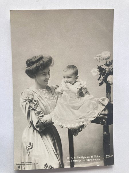 Ett vackert fotografi av Hertiginnan af Skåne med Hertigen af Västerbotten. Fotografiet är taget av F. Flodin 1906.