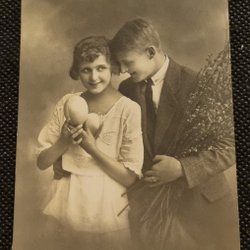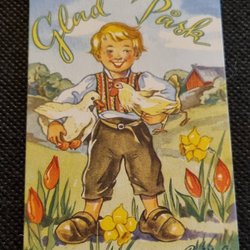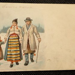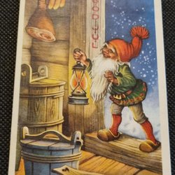 Ann Mari, Pojke , går med lykta, och väska med hästskor. I snön. OSKRIVET