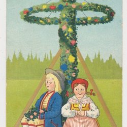 Aina Stenberg Dubbelt julkort 14 x 11,5 cm Kulla och mas dansar Kurbits KV6 7*