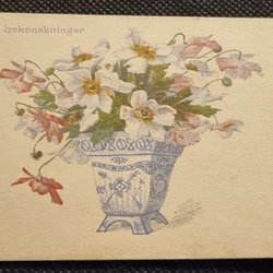Ingeborg Uddén Kruka med rosa- lila blommor, NK 183. Oskrivet
