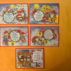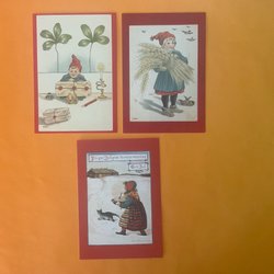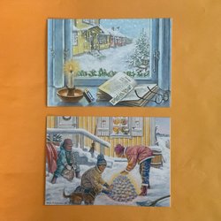 JULKORT. OSKRIVNA KORT. Vykort. NYTRYCK. Sign. L C. Tomtar. Julsaker.