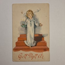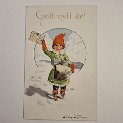 Antikt vykort - Gott nytt år! - S. Sundius Dahlström dat 1919 - Barn, blommor