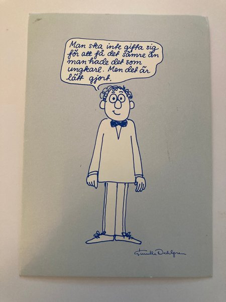 En rolig med texten "Man ska inte gifta sig för att få det sämre än man hade det som ungkarl. Men det är lätt gjort."