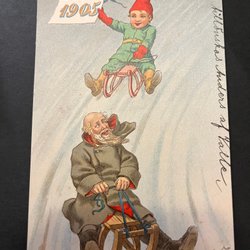 Ett vykort med ett motiv av två män som spelar kort. Adressat på baksidan.