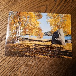 Vykort från 1978 med motiv från Rävabacken, Urshult. Innehåller bilder av vandrarhem, stugor och badgäster. Text på baksidan beskriver platsen.