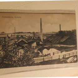 Ett vykort som visar Torpshammars Såg och Trämassefabrik. pappers avdelning 11.