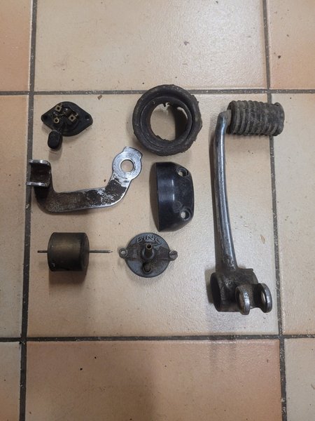 Bing flåtörlock 35mm, flåtör 32mm, bromspedal, avgasmuff 43mm, omkopplare okomplett + lite annat.