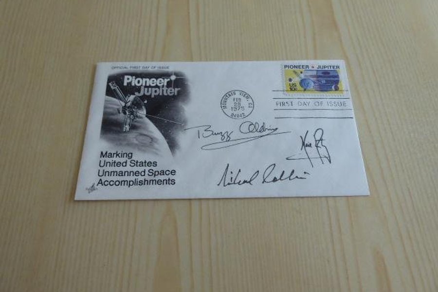 Rymd, kuvert. Apollo 11 autografer är tryckta.