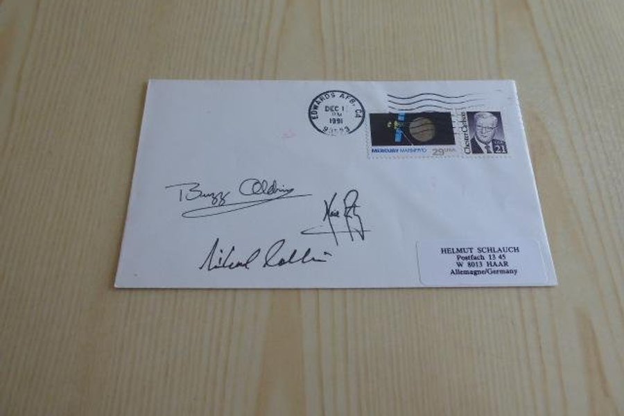 Rymd, kuvert. Apollo 11 autografer är tryckta.
