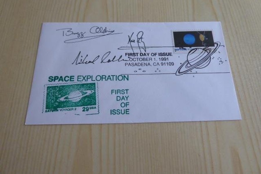 Rymd, kuvert. Apollo 11 autografer är tryckta.