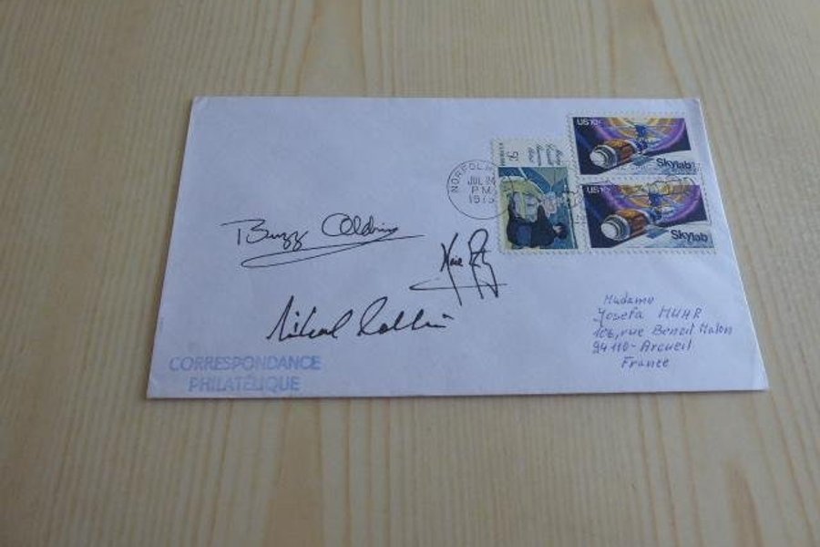 Rymd, kuvert. Apollo 11 autografer är tryckta.