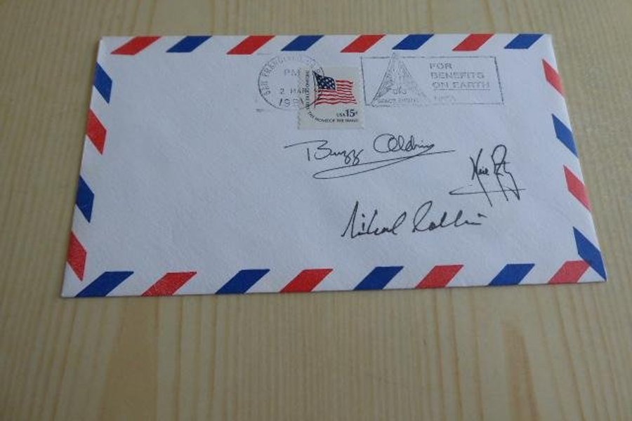 Rymd, kuvert. Apollo 11 autografer är tryckta.