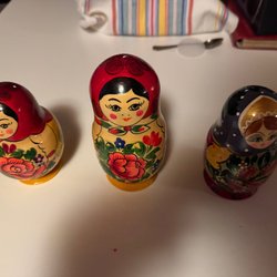 Dockor man kan vända på, ser ut som muffins eller som docka med hatt. 1 stor och 2 små