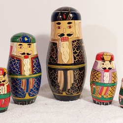 Set med Matryoshka dockor. Inkluderar traditionella ryska dockor och en serie med Kalle Anka tema.