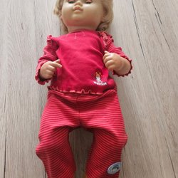Säljer super söt dockan Skrållan med extra klänning. Dockan pratar olika fraser när man trycker på magen.