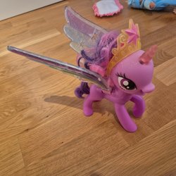 En söt lila My Little Pony figur med vingar och horn. Den har färgglatt hår och söta detaljer.