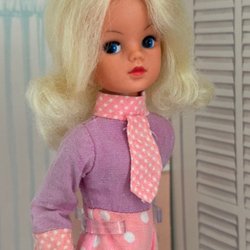 En ”Masquerade” Sindy med ett fantastiskt fint originalhår och ny makeup. Ett av benen böjer en gång, det andra böjer som det ska.