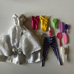 Ett sortiment av Barbie badkläder och accessoarer. Oklart om det är äkta Mattel.
