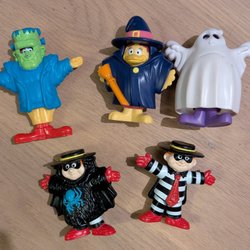Ronald McDonald figurer och fordon. Olika årtal. Väger 200 g opackat. Säljer barnens McDonalds-leksaker huvudsakligen från 90-talet. Försökt sortera och kombinera ihop, men det kan ha blivit fel. Du bjuder på det du ser. Självklart kan jag ha missat någon repa. Är frakten fel när jag packat, tar jag kontakt och återbetalar mellanskillnaden. Välkommen att bjuda.