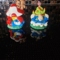 Två Smurf prydnadsföremål