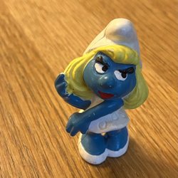En smurffigur. Oklart var den är ifrån.
