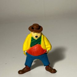 En figur föreställande en trollkarl med hatt, skägg och mantel. Figuren har en flaska och en väska fäst vid bältet. Märkt CHAP MEI och tillverkad i Kina.