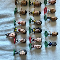 Detta är en samling med 19 fotbollsfigurer. Varje figur står på en egen bas.