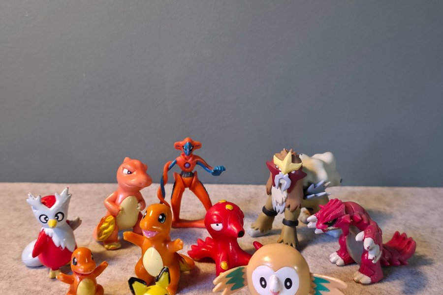 Ett set med 10 Pokémon figurer. Innehåller karaktärer som Pichu, Charmander, Rowlet, Deoxys, Entei, Octillery, Groudon och Delibird.