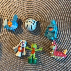Vintage TOMY pokemon figurer. Lot med Lapras, Seaking, Staryu, Chinchou og Mantine. God blanding af klassiske water pokemon fra flere generationer. Lapras er nok den mest kendte, men samlet er der god variation. Alle er originale TOMY figurer.