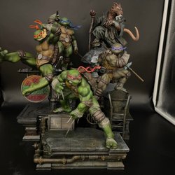 Säljer en detaljerad staty av Leon S. Kennedy från Resident Evil 4. Statyn visar Leon med sin karaktäristiska utrustning och vapen, placerad framför en bakgrund med diverse verktyg och en fiende. Perfekt för samlare och fans av Resident Evil-serien.