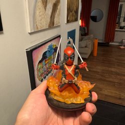 Säljer en detaljerad Deadpool-staty. Perfekt för samlare och fans av Marvels Wade Wilson. Statyn har vapen och står på en bas.