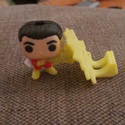 Actionfigur föreställande Robin från DC Comics. Figuren har en svart mantel, röd överkropp med gula detaljer och svarta byxor. Ansiktet har en grön mask. På bröstet finns en logotyp med bokstaven "R". Figuren har rörliga leder.