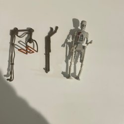 Silverfärgad Batman actionfigur. Perfekt för samlare eller som en leksak.