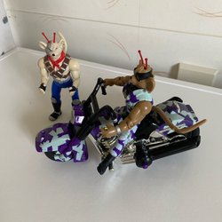 Actionfigur från Biker Mice . Figuren är grön och gul med svarta stövlar och handskar. Den har en lång gul svans
