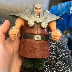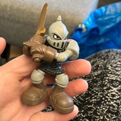 Riddarfigur i silverfärg med vita och blå detaljer. Tillverkad av Chap Mei, Kina.