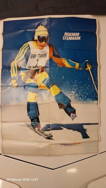 En poster med Ingemar Stenmark. Postern är från FIB-aktuellt.