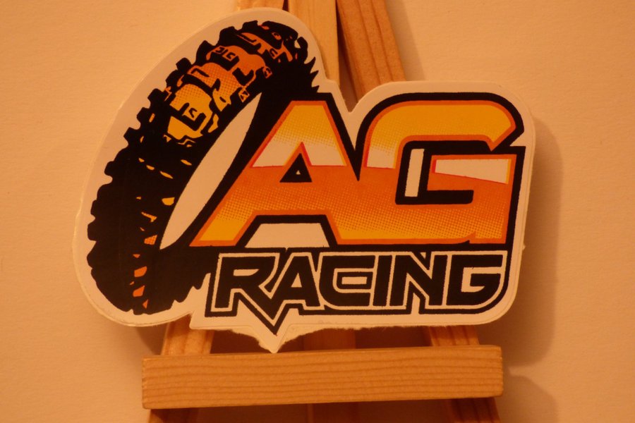 En fin dekal med reklam för AG Racing 8,5 x 6,5 cm