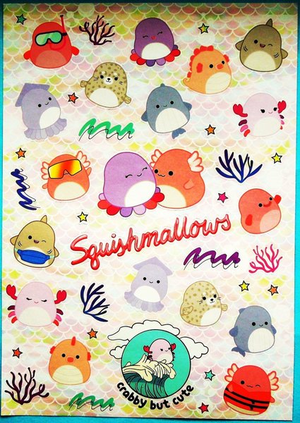 Stickers: Squishmallows,. Mått: 14,5 cm x 20 cm. Mycket fint skick, ny. Samfraktar. Om fler köp kontakta mig för rätt porto.