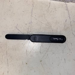 Fällkniv med svart handtag och silverfärgat blad. Handtaget har en texturerad yta och flera runda utskärningar. Bladet är spetsigt och har en slät yta. Kniven har ett bältesclip på baksidan av handtaget.