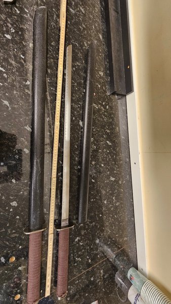 Två svärd jag hade till en kostym för några år sen. Är väl i sådär skick, går nog putsa upp.