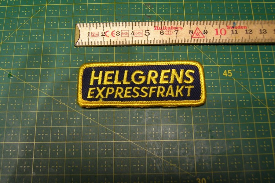 Tygmärke 85x30mm Hellgrens Expressfrakt från när Åkeriet var del av ASG och hade huvud kontoret i Skellefteå. Åkeriet var ett dotterbolag till ASG sen 1969 och är sen 2003 en del av DHL åkeri.