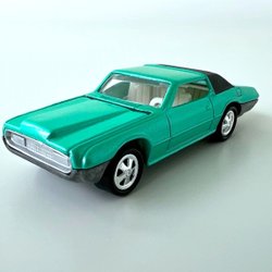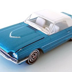 En blå leksaksbil, modell Ford Thunderbird. Dörrarna kan öppnas.