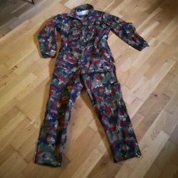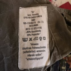 Grön parkasjacka med knäppning framtill och fickor fram med knäppning av rejäla knappar. Jackan har kragspeglar för artelleriet. och ett löstagbart varmt foder.Mycket gott skick, troligen oanvänd.storlek L uppskattad då märkning saknas.