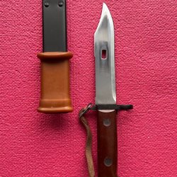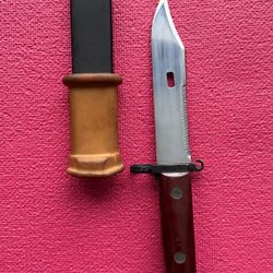 Äldre bajonett Hylsan är 5 cm diameter 2,3 cm bladet är 37,5 cm vet tyvärr inget mer ,del saknas