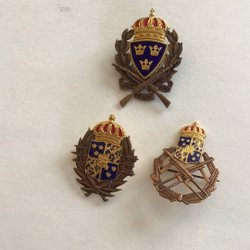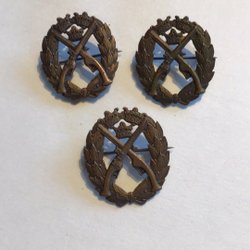 Samling av militära märken med krona och korslagda gevär.Frivilliga Skytterörelsen,6st