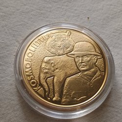 En broderad patch med texten "POLICE COUNTY OF NASSAU N.Y." och ett motiv av ett lejon i gult och blått.