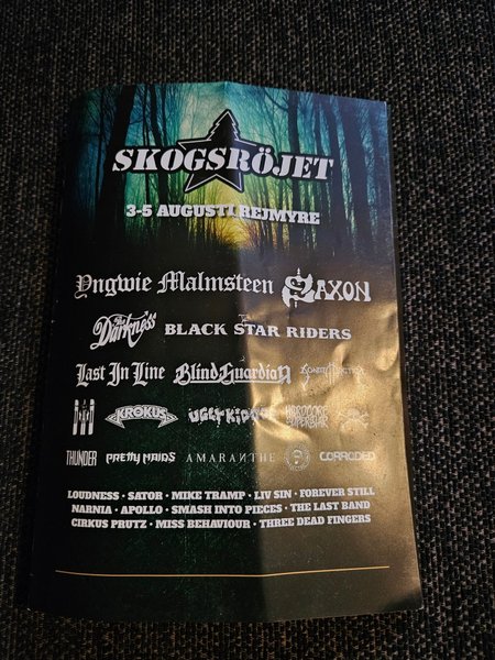 program för Skogsröjet 2017 med artister som Yngwie Malmsteen, Saxon, The Darkness, Black Star Riders, Last In Line, Blind Guardian, Sonata Arctica, Hardcore Superstar, Krokus, Ugly Kid Joe, Thunder, Pretty Maids, Amaranthe, Corroded, Loudness, Sator, Mike Tramp, Liv Sin, Forever Still, Narnia, Apollo, Smash Into Pieces, The Last Band, Cirkus Prutz, Miss Behaviour och Three Dead Fingers.