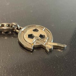 Vintage fin nyckelring i metall, läder och emalj
