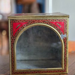 En gammal plåtburk från Chokladfabriken Hälsingborg.